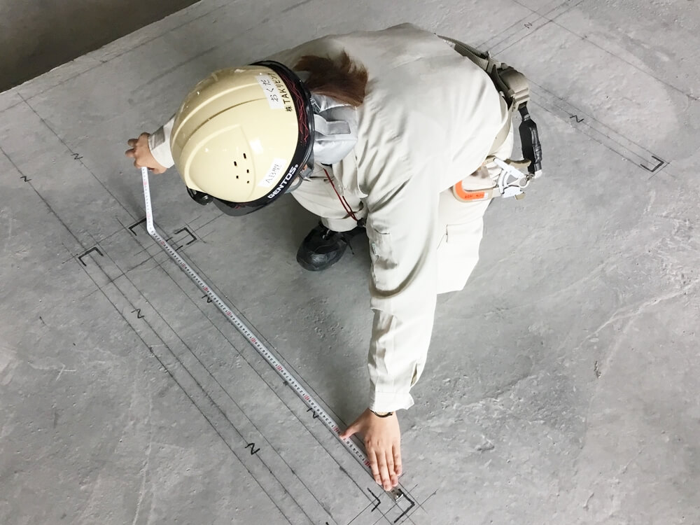 工場で仮組立されて設計図通りの精度を確認された部材が、現地に運ばれ、品質管理を加え各工程単位の精度を確認しながら短工期で組立てます。